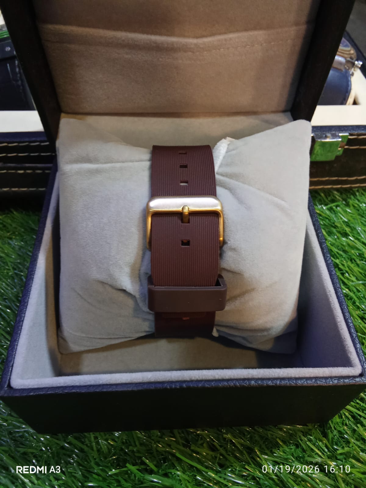 The watch features a detailed multi-layered dial with three sub-dials, giving it a technical yet clean look. The supple brown leather strap is designed to age beautifully, making it the perfect companion for brown leather shoes, belts, and formal suits. Whether it’s a high-level business meeting or a formal evening dinner, the Mocha Gold ensures you carry an aura of prestige.