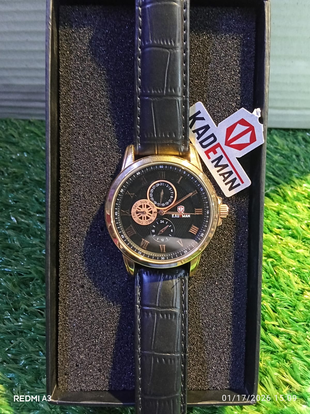 Designed for the executive lifestyle, the watch doesn’t just tell time—it tracks your entire day with its functional day and date windows. The supple black leather strap is embossed with a premium texture, ensuring it remains comfortable on your wrist from morning meetings to evening dinners. If you are looking for a watch that makes a statement of success and class, this Kademan edition is your perfect match.