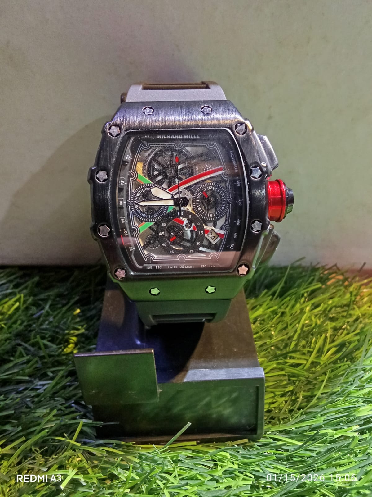 The watch features a matte black industrial finish with striking red highlights on the crown and dial hands. The “Skeleton” dial allows you to see the complex layers of the watch, giving it a powerful, technical presence. Paired with a flexible, sweat-resistant silicone strap, it is the perfect companion for a sporty lifestyle or making a bold impression at a social gathering. It’s not just a watch; it’s a piece of engineering on your wrist.
