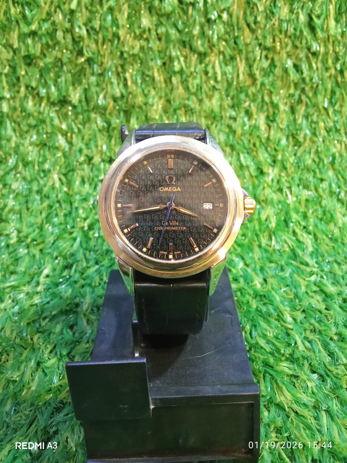 Built with a solid stainless steel case, it features the characteristic “Helium Escape Valve” crown at 10 o’clock, maintaining its authentic professional profile. The two-tone bracelet is designed for both durability and comfort, featuring a secure folding clasp. Whether you’re at a formal dinner or a business meeting, the “Black & Gold” Seamaster reflects a persona of authority and sophisticated taste.
