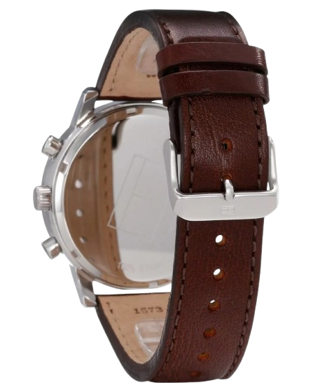 This Tommy Hilfiger timepiece is designed for the man who wants a versatile watch that balances sportiness with elegance. The standout white dial is highly legible, featuring bold oversized Arabic numerals and a unique angled date window between the 4 and 5 o’clock positions.