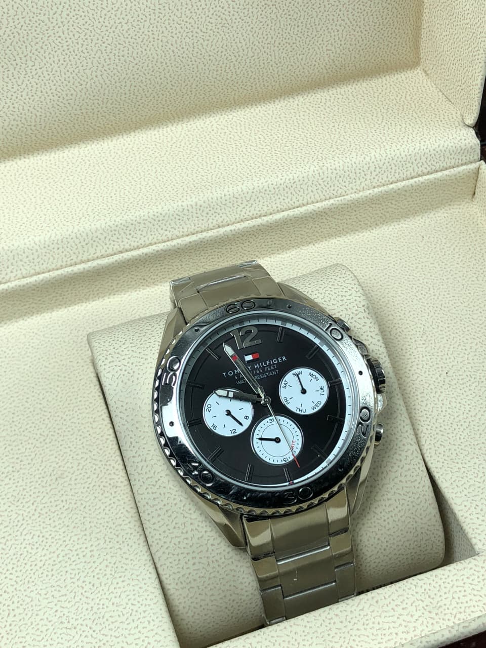 Be the first to review “Tommy Hilfiger Men’s Silver Stainless Steel Watch – Black Dial with Triple Sub-Dial Display”